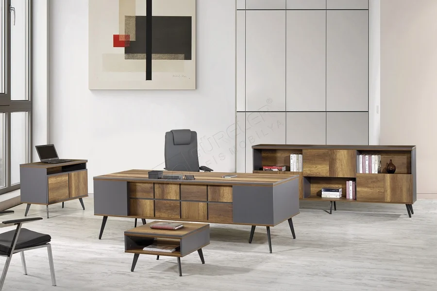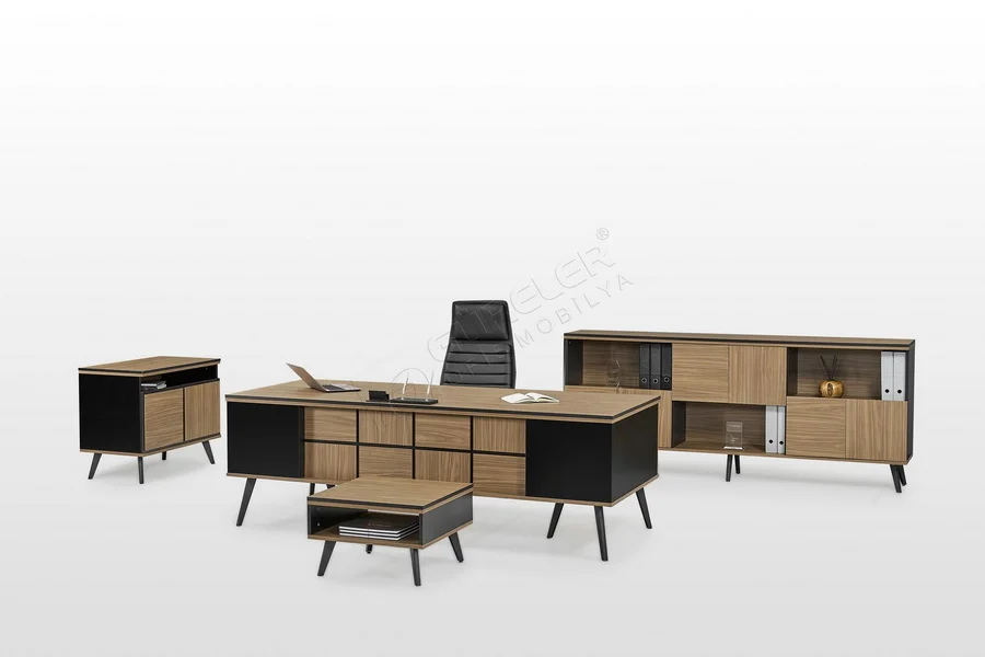 Ofisinizde prestij ve işlevselliği bir araya getiren bu yönetici masa takımı, modern tasarımı ve dayanıklı yapısıyla fark yaratıyor. Çeşitli ölçü ve renk seçenekleriyle her ofis ortamına uyum sağlayan bu set, estetik görünümü ile de dikkat çekiyor.