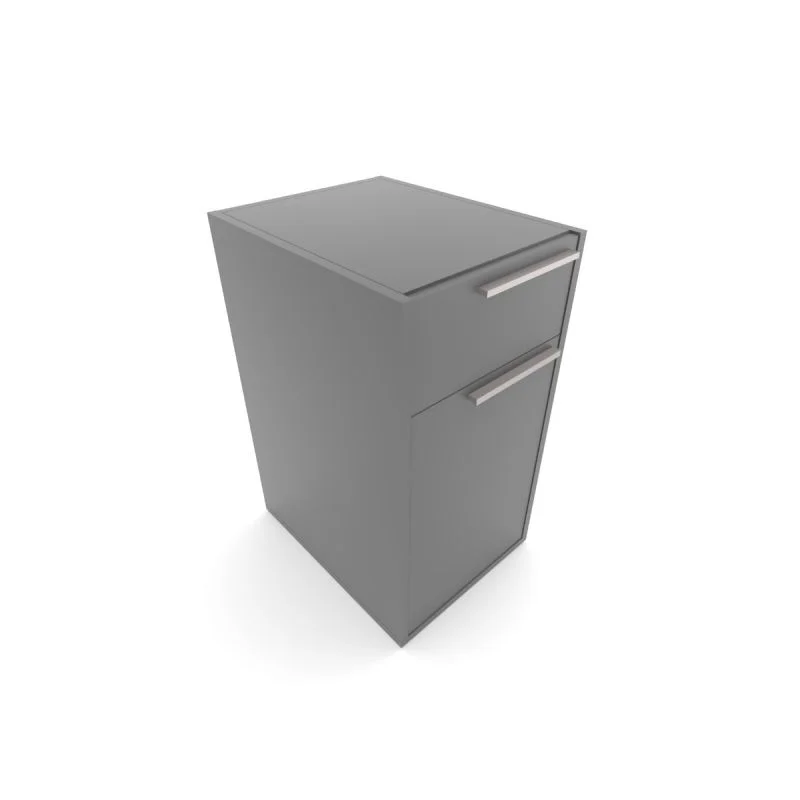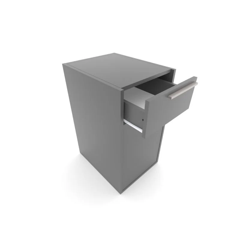 1 çekmece + 1 kapak kombinasyonuna sahip banko altı dolap, hem hızlı erişim hem de kapalı depolama ihtiyacını aynı gövdede birleştirerek fonksiyonel bir çözüm sunar. Banko arkası kullanım için tasarlanan bu model, resepsiyon, danışma, klinik ve ofis alanlarında düzeni artırır.